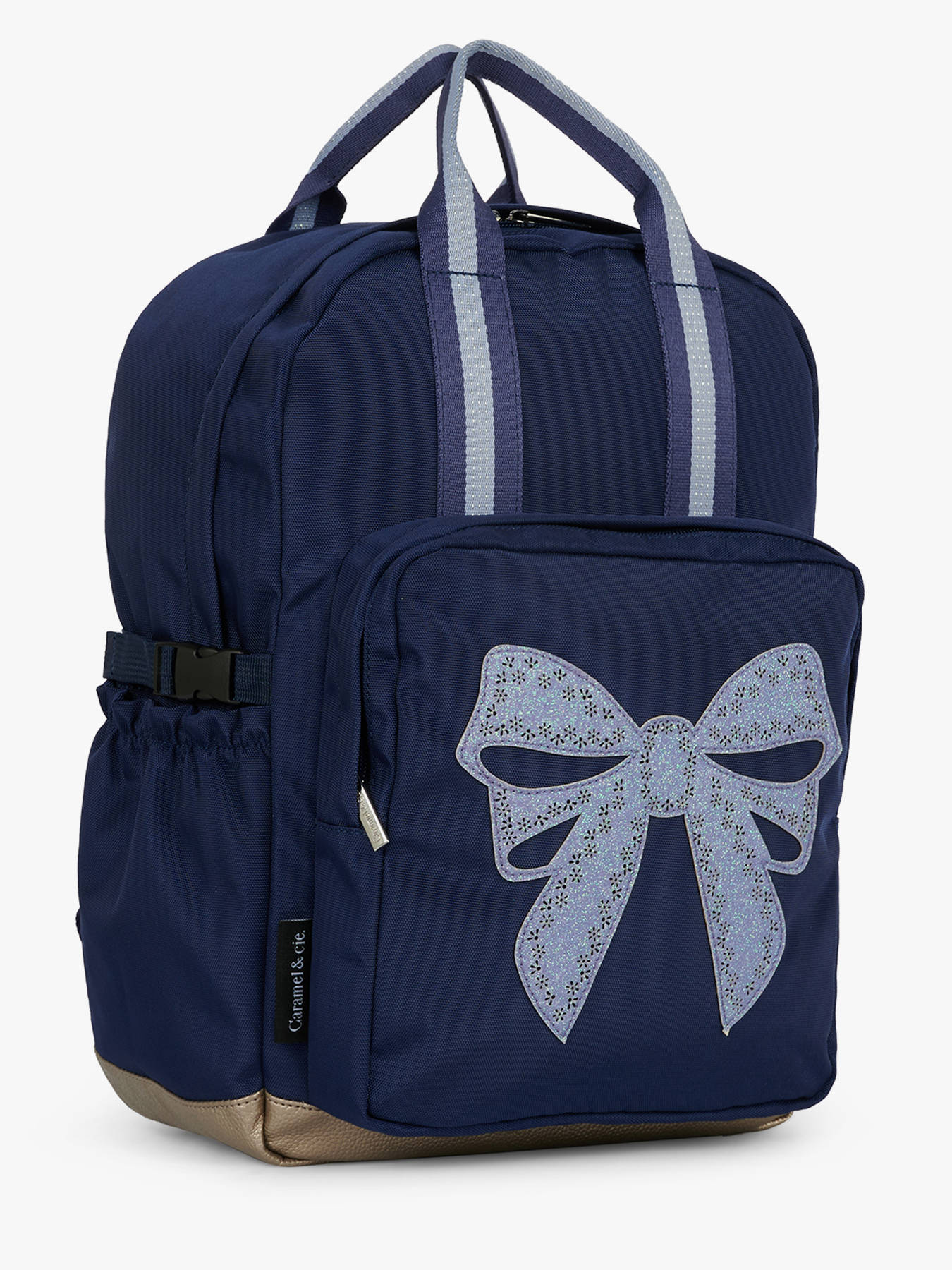 40 cm - 16 liters - 0.8 kg ~ This CARAMEL ET CIE 1-compartment backpack, made from recycled polyester, is perfect for girls aged 6 to 8. Its zippered main compartment provides ample space to hold A4 folders, notebooks up to 24x32 cm, and A4 binders. Outside, a zippered front pocket and a side pocket offer quick access to small items and accessories. Adjustable shoulder straps ensure optimal comfort for back carrying, while the handle allows hand carrying. Lightweight, durable, and eco-friendly, this backpack perfectly supports school days while showcasing a modern and committed style.