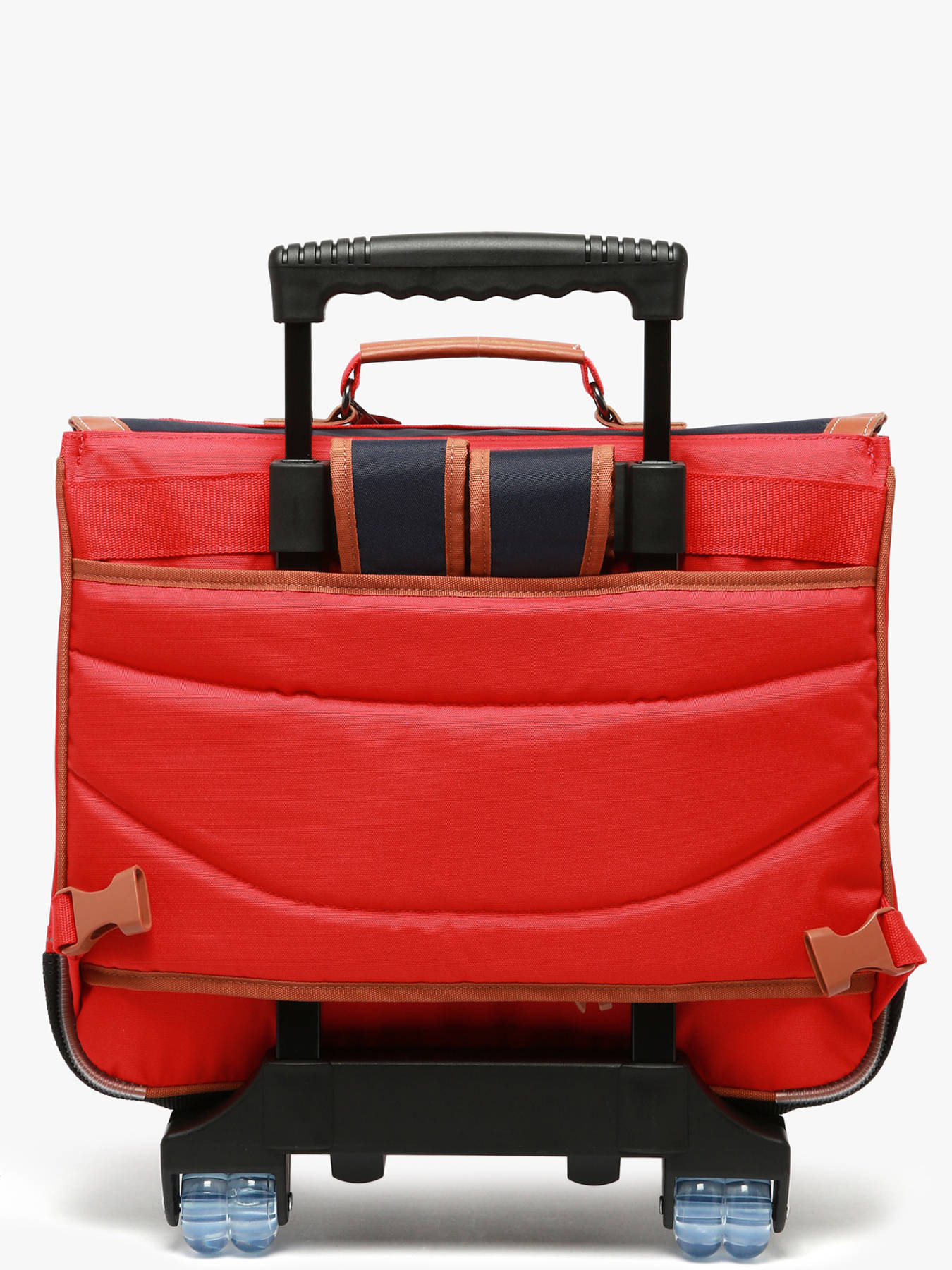 41 cm - 20 liters - 2.5 kg ~ This TANN'S wheeled schoolbag, made from recycled polyester, is ideal for boys aged 7 to 10. With two spacious compartments, it fits an A4 folder, 24x32 cm notebook, and an A4 accounting binder. It also includes two inner zip pockets for better organization. Two front exterior pockets allow quick access to essentials. The flap with clasp provides secure closure. Adjustable straps and a reinforced handle ensure comfortable carrying, while the wheels make transport easy. A smart, functional choice for school.