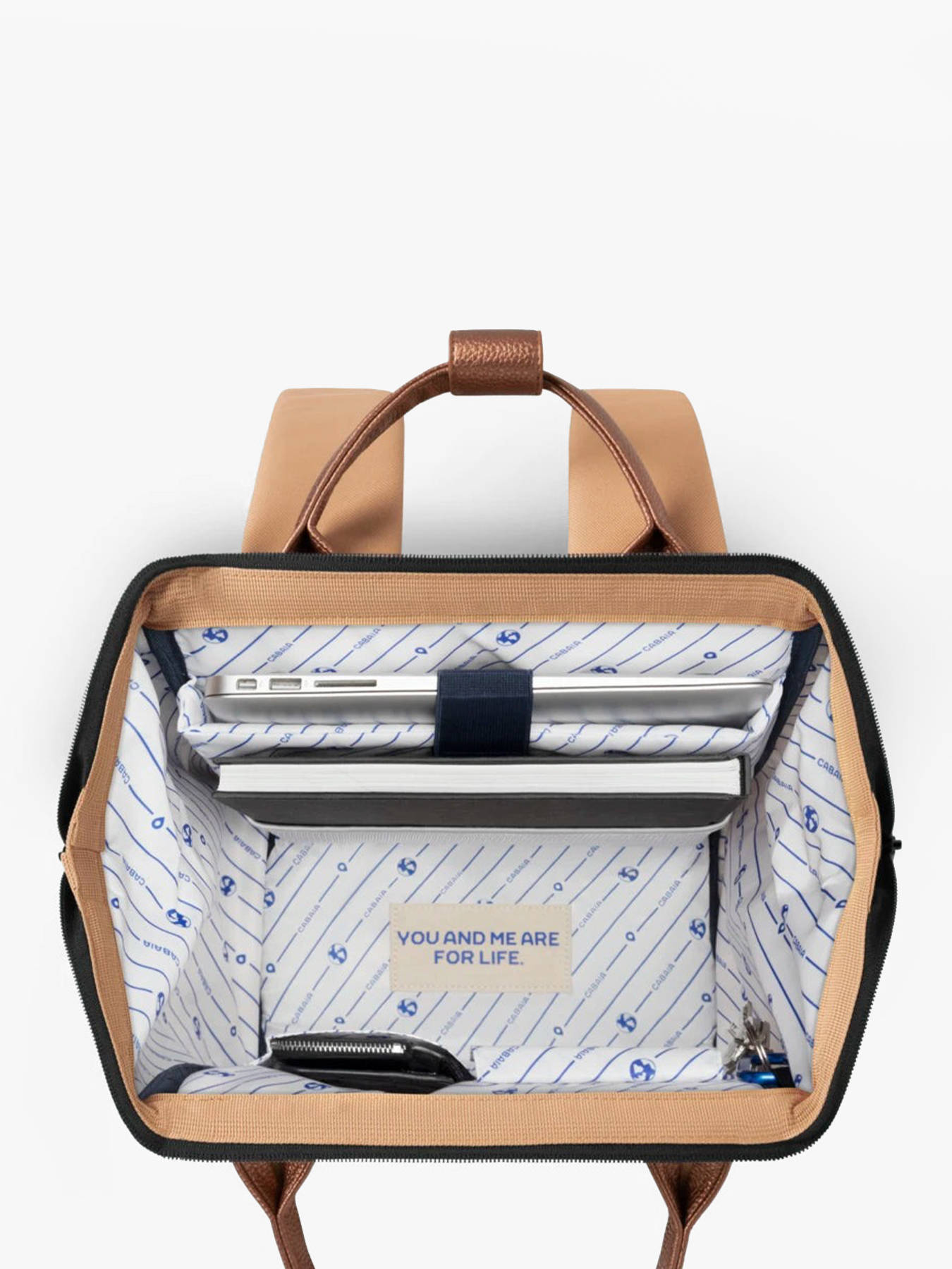 Ce sac à dos Cabaïa de la ligne Tour du Monde se porte sur le dos en utilisant les bretelles réglables ou à la main grâce à l'anse et peut s’accorder avec bon nombre de tenues.
