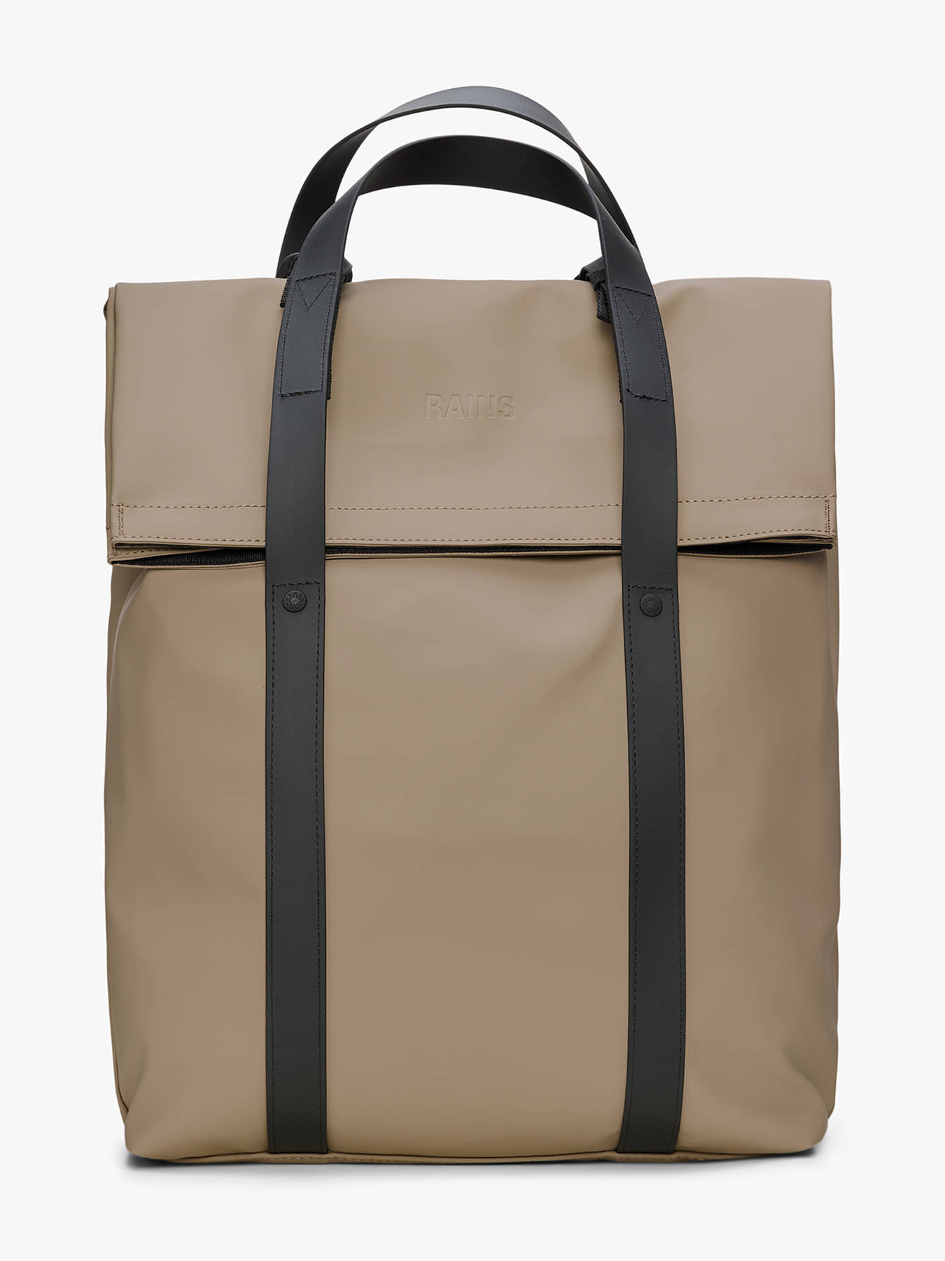 The RAINS backpack stands out with its sleek and modern design. Made from waterproof polyester, it features a stylish flap and a discreet back pocket for keeping your belongings safe. Its main compartment fits A4 documents and includes two open pockets and one zipped inner pocket for optimal organization. With adjustable shoulder straps, it offers daily comfort. Whether carried by hand or on your back, it blends minimalist style with functionality.