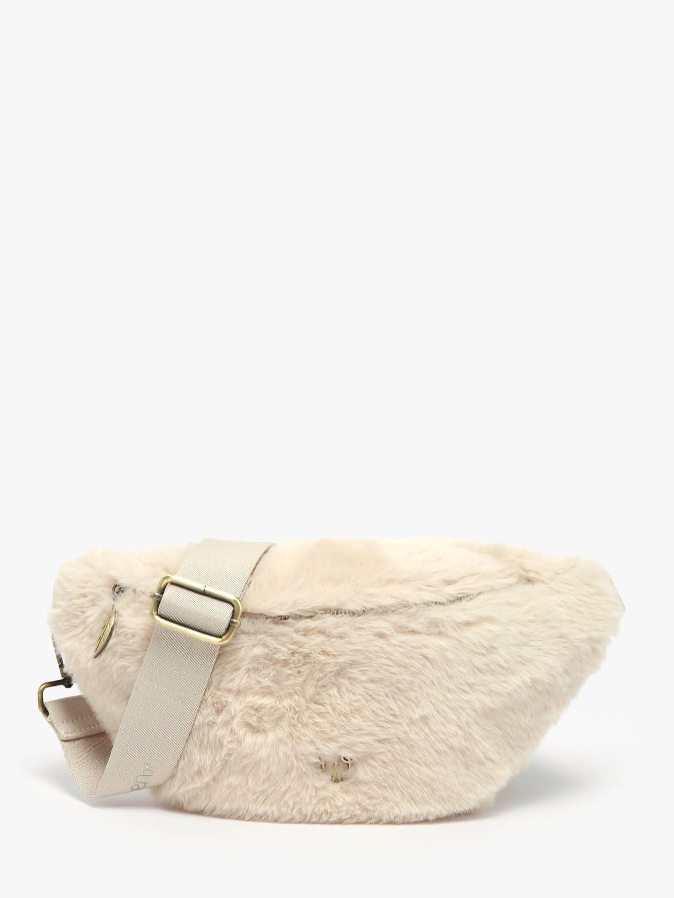 The WOOMEN belt bag from the OLIVIER line, crafted in soft plush material, stands out with its elegant metal logo and adjustable, removable nylon strap for wear at the waist or across the chest. Made from polyester with a cotton and linen lining, it features a zip closure and a functional interior with a slip pocket, a zipped pocket, and a single main compartment—combining style, comfort, and practicality for everyday use.
