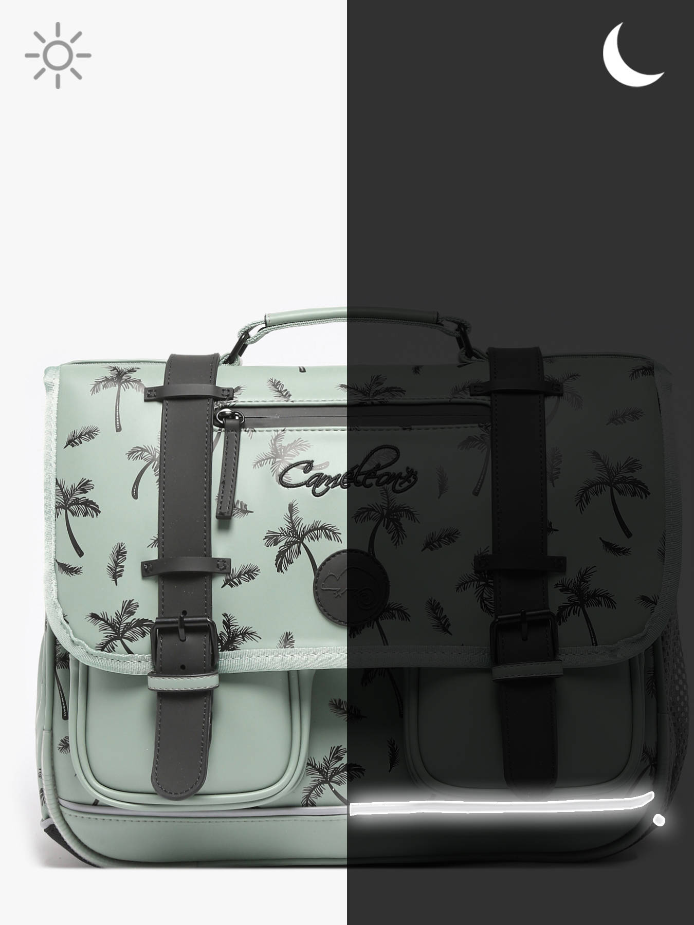 38 cm - 18 litres - 1.5 kg ~ Cartable primaire 38 cm signé Caméléon de la ligne Vintage North. Ce cartable enfant convient parfaitement pour le CP, le CE1 et le CE2. On adore les belles touches vintage avec ses finitions et sa poche à fermeture zippée sur le rabat ! Il se divise en deux grands compartiments pour l'ensemble des affaires d'école. Fonctionnel, il dispose d'une poche intérieure zippée, d'un emplacement spécial règle ainsi que de deux poches à fermeture éclair sur le devant du cartable. Petit plus, ce cartable dispose d'une étiquette nom et d'un emplacement pour la gourde sur le côté. Ergonomique, la poignée et le fond du cartable sont renforcés. Très confortable, le dos et les bretelles sont rembourrés. Ce cartable est imperméabilisé. Côté sécurité, des bandes réfléchissantes sont disposées autour du cartable enfant. Petit plus, une règle est offerte !