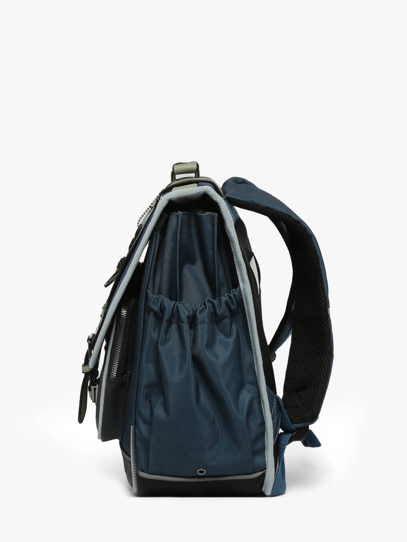 41 cm - 24 litres - 1.33 kg ~ Cartable enfant primaire 41 cm signé Caméléon de la ligne Vintage Urban. Ce cartable enfant convient parfaitement pour le CM1 et le CM2. Il se divise en trois grands compartiments pour l'ensemble des affaires d'école. Fonctionnel, il dispose d'un emplacement spécial gourde et de trois poches à fermeture éclair sur le devant du cartable. Petit plus, ce cartable dispose d'une étiquette nom. Ergonomique, la poignée et le fond du cartable sont renforcés. Très confortable, le dos et les bretelles sont rembourrés. Ce cartable est fabriqué en polyester recyclé imperméable. Côté sécurité, des bandes réfléchissantes sont disposées autour du cartable enfant. Petit plus, une règle est offerte !