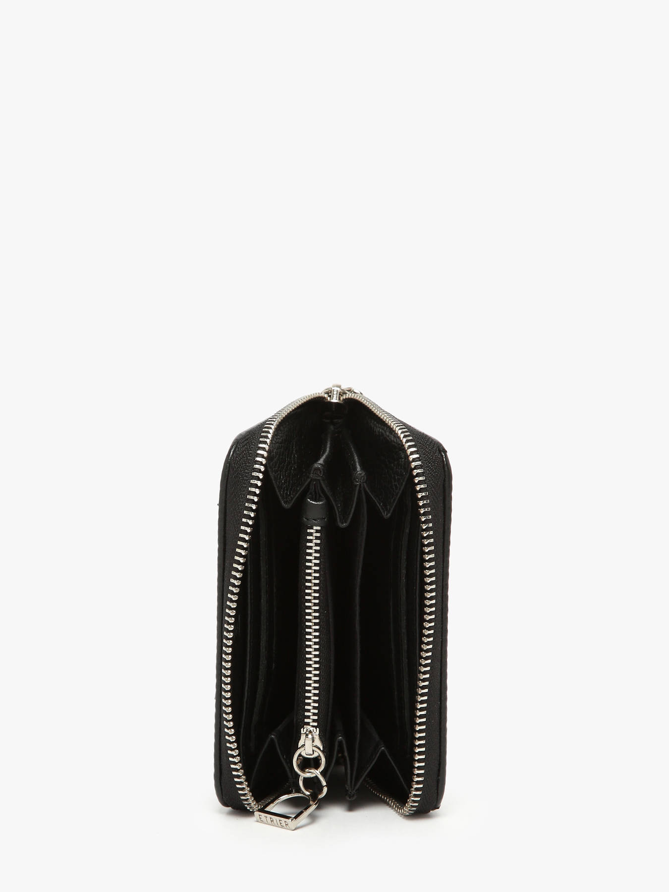 The ETRIER Altesse leather coin purse combines practicality and elegance. Featuring a side ring for attaching a strap, it includes one zippered pocket and six card slots. This season, the iconic Altesse models are reinvented in new shades, enhanced by the signature Etrier clasp.