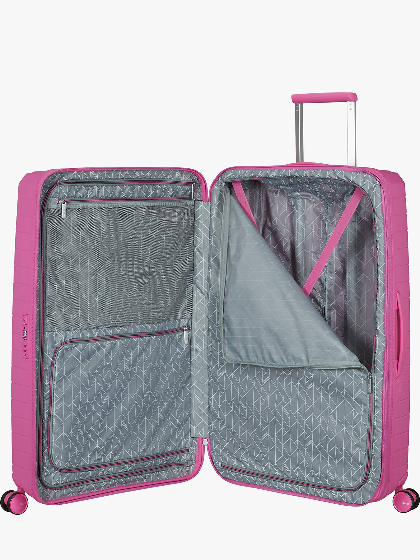 Ideal for long trips, the FastForward checked suitcase by American Tourister combines striking design with smart functionality. Made from durable polypropylene, it’s expandable from 108 to 118 L, weighs just 3.9 kg, and measures 78 x 50 x 30/34 cm. Its 4 shock-absorbing suspension wheels ensure quiet and smooth mobility on any surface. It features a TSA combination lock, zippered closure, multi-position telescopic handle, and top carry handle. Inside, it offers a well-organized layout with cross-straps, two lined compartments, a divider panel, and a built-in AirTag holder for easy tracking. To make it your own, each suitcase includes a custom sticker sheet with letters and fun emojis. Backed by a 3-year global warranty, FastForward is where modern style meets travel efficiency—travel far, travel light, and always move forward.