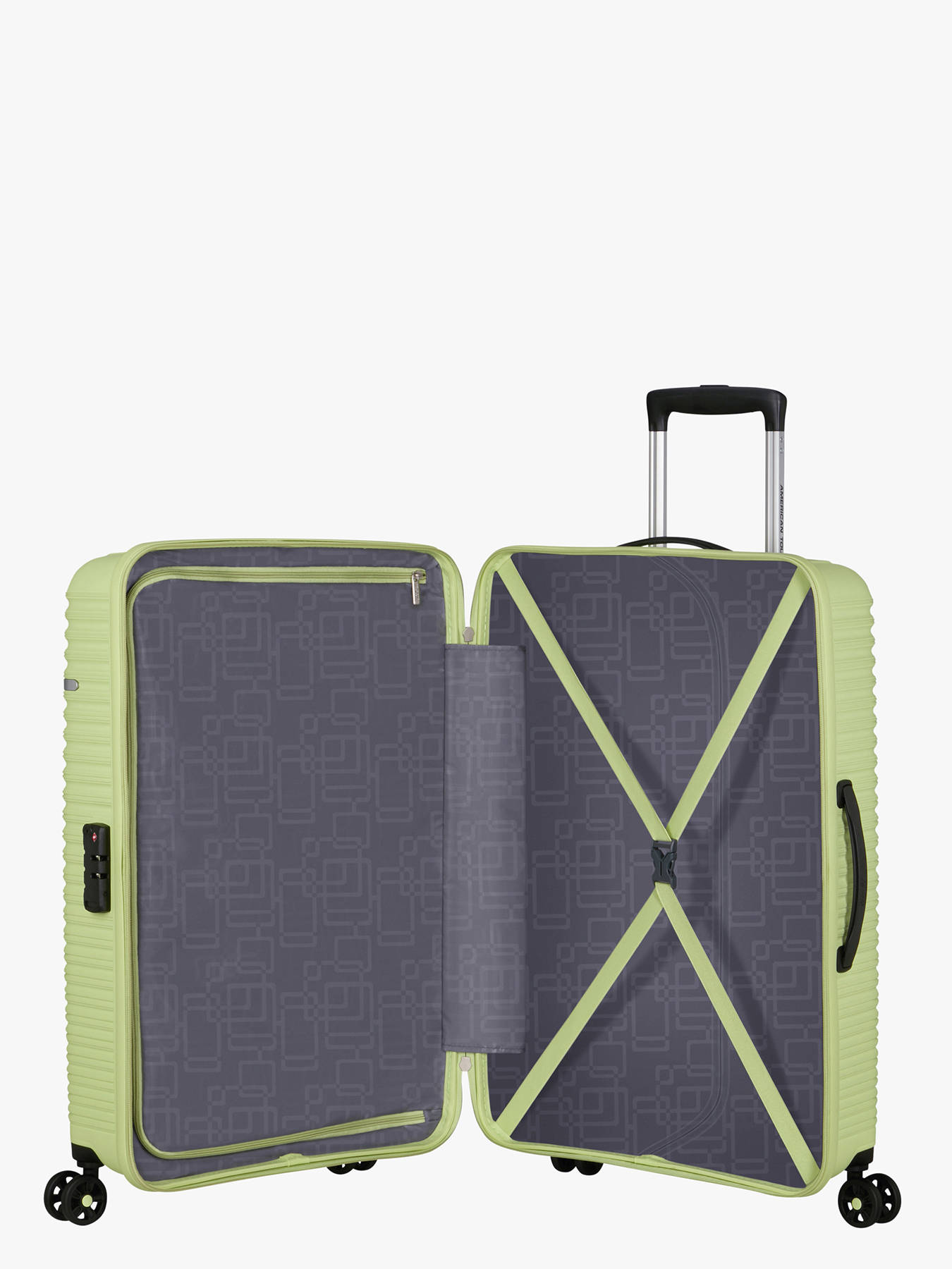 Ideal for week-long trips, the American Tourister LiftOff 67 cm check-in suitcase stands out with its modern design, functionality, and durable construction. Made from tough polypropylene, it remains lightweight at just 3 kg. Its spacious 70 L capacity can be expanded with a zippered gusset, offering flexibility for extra packing. Easy to maneuver, it features four smooth-rolling wheels, a multi-stage telescopic handle, and both top and side carry handles. A built-in TSA combination lock keeps your belongings secure. Inside, elastic cross straps and a fully lined divider ensure efficient organization. With its color-matched zipper and sleek metal logo, the LiftOff 67 cm offers a perfect blend of style, practicality, and reliability for all your travels.