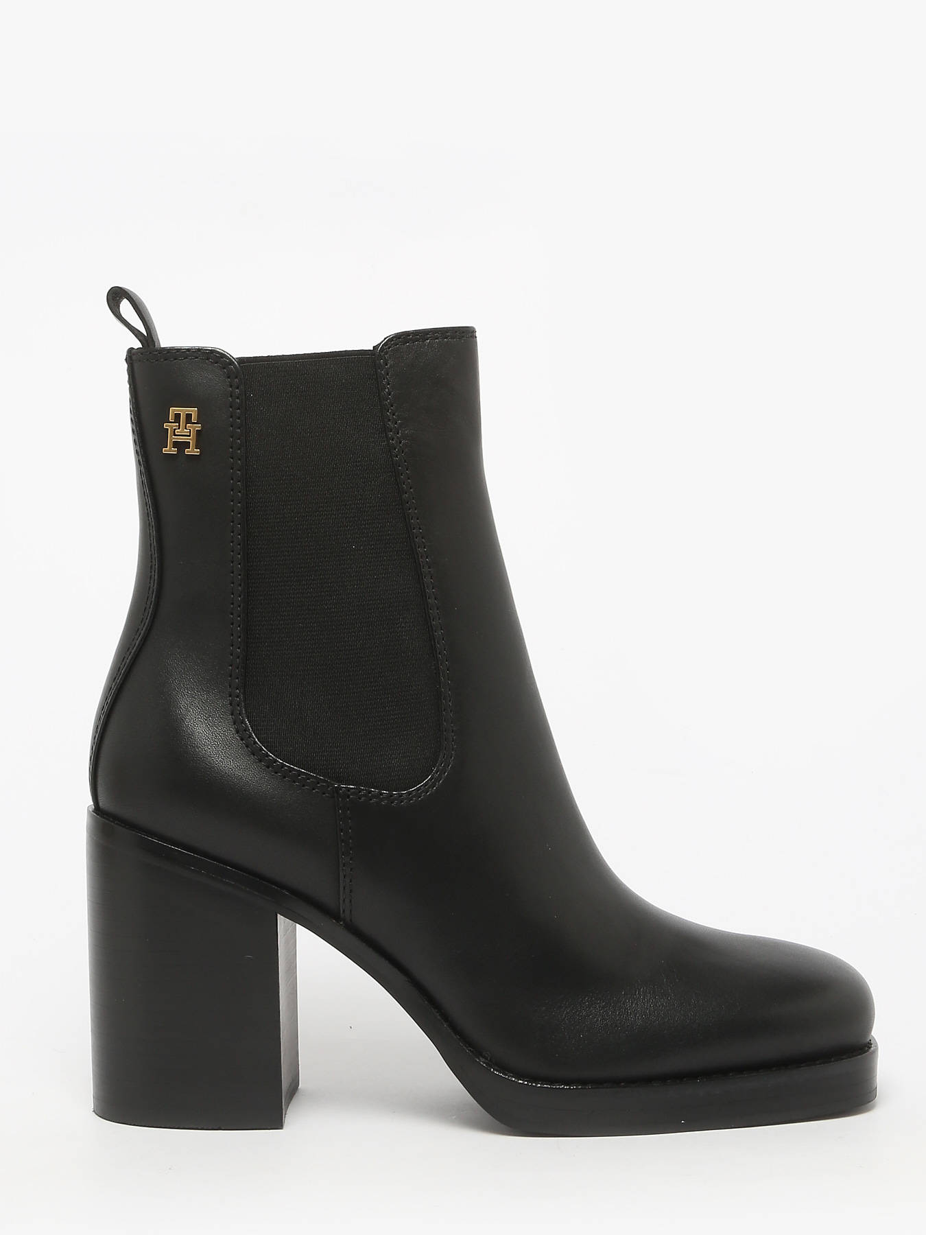 The SQUARE TOE CHELSEA HIGH BLOCK HL ankle boots by TOMMY HILFIGER combine modernity with bold elegance. Featuring a square toe and a 9 cm block heel, they provide both a striking style and stable comfort for day or evening wear. Made from smooth-finish leather and textile, they stand out for their refined and versatile look. The leather and textile lining ensures breathability and softness, while the leather insole provides comfortable support with every step. Easy to slip on thanks to the side elastics, these boots embody practical, contemporary chic. Perfect with a skirt, dress, or fitted trousers, they reflect TOMMY HILFIGER’s craftsmanship and elegant spirit, blending modern design, premium materials, and optimal comfort.