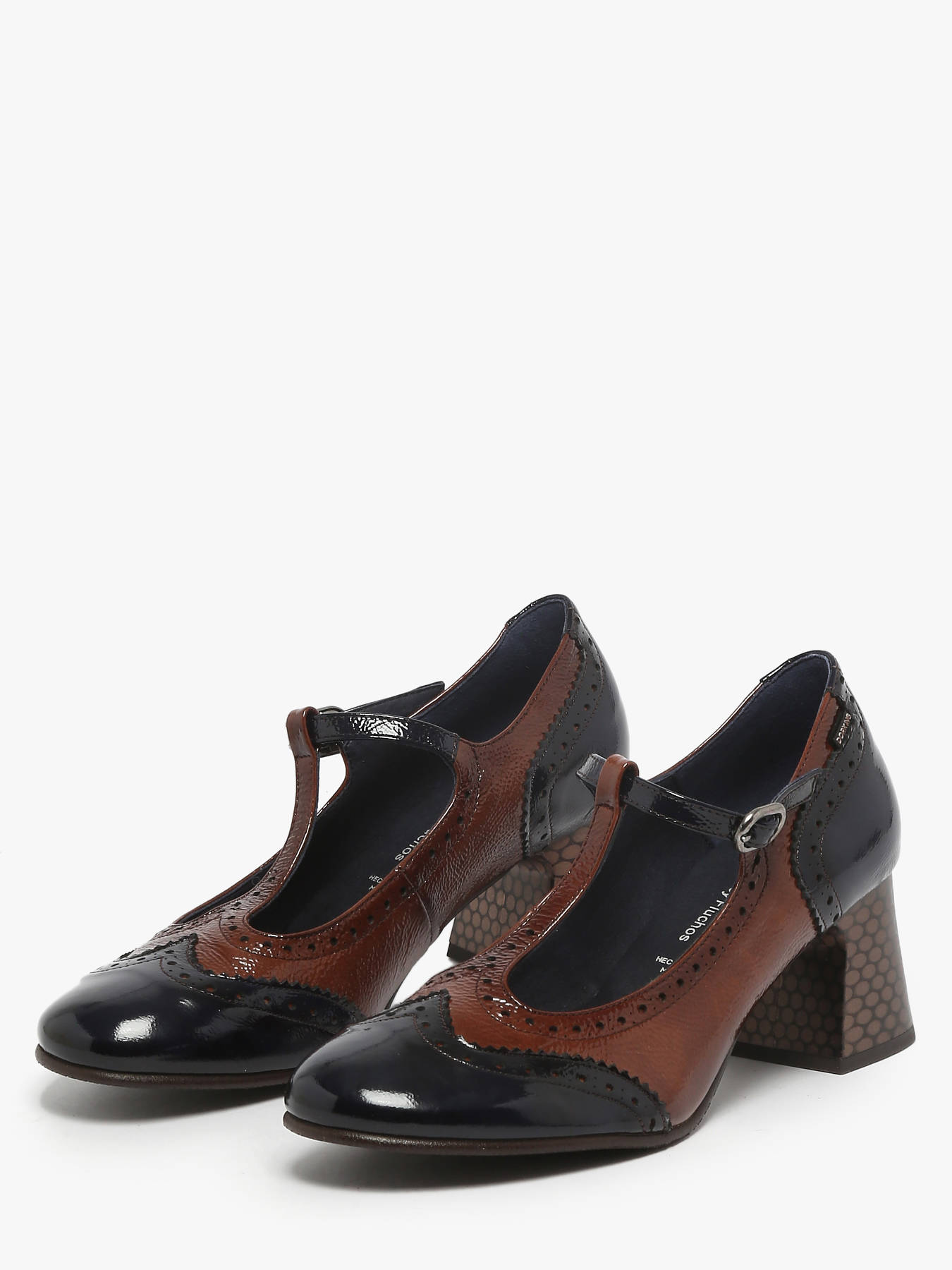 The DACY heeled derby shoes by DORKING combine elegance and modernity with their refined two-tone design and patent leather finish. Their 6 cm block heel provides a stable and comfortable stride while adding a feminine and sophisticated touch. The textile lining ensures softness and breathability for optimal comfort throughout the day, while the textile insole enhances overall well-being. The buckle closure allows for a precise fit. Versatile, they pair equally well with professional outfits or more casual looks, making this model a chic and practical wardrobe essential.