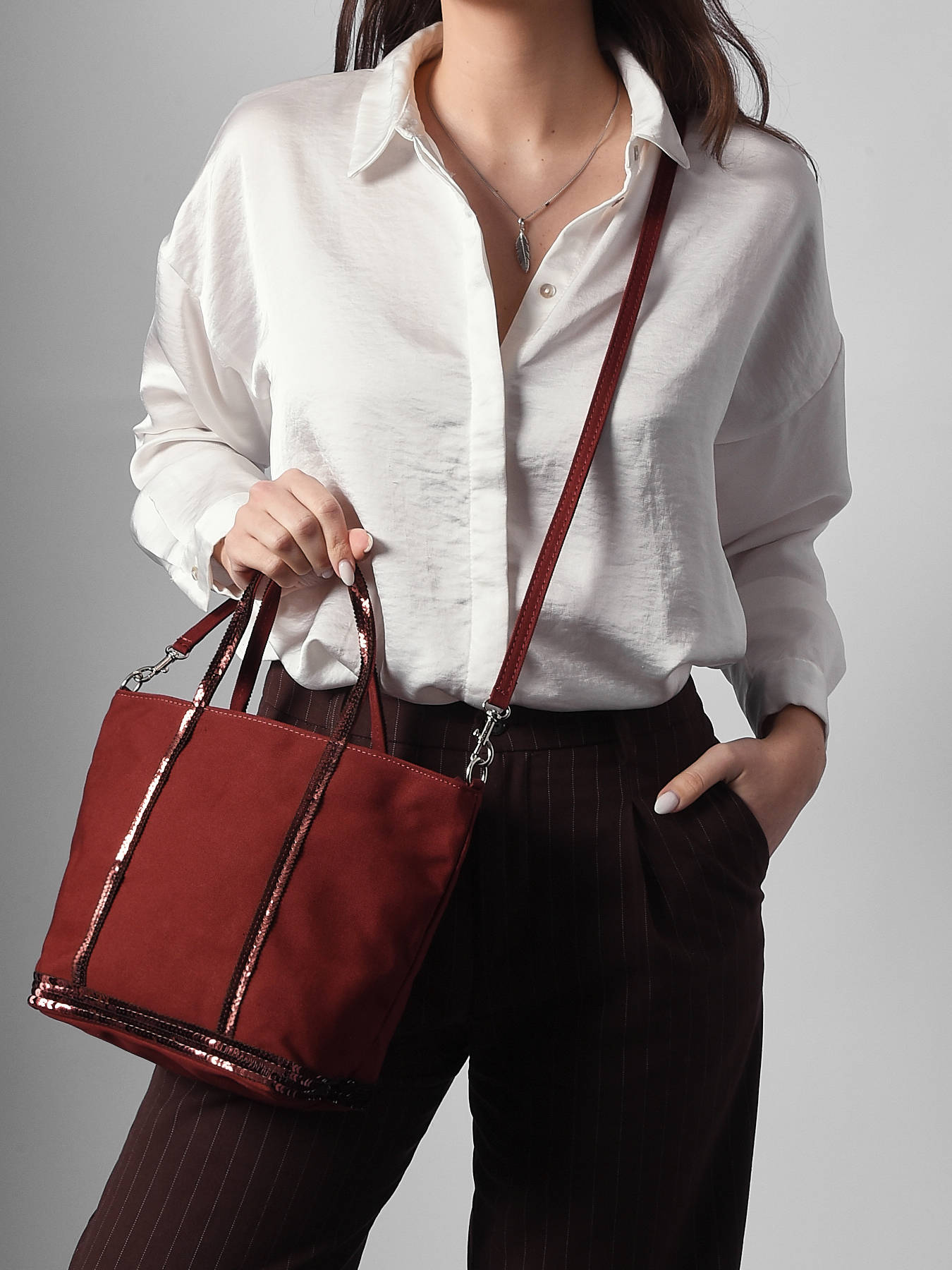 On adore ce sac à main Le Cabas signé Vanessa Bruno. Il est confectionné dans une toile de coton surmonté de paillettes, fabriqué en France dans les ateliers Vanessa Bruno près de Paris. Il s'agit d'une nouvelle taille de cabas, encore plus pratique et légère. Ces dimensions réduites ne vous permettront pas d'inclure beaucoup d'objets inutiles. Ce petit sac à main dispose de deux anses courtes et une bandoulière amovible pour un porté épaule ou croisé.