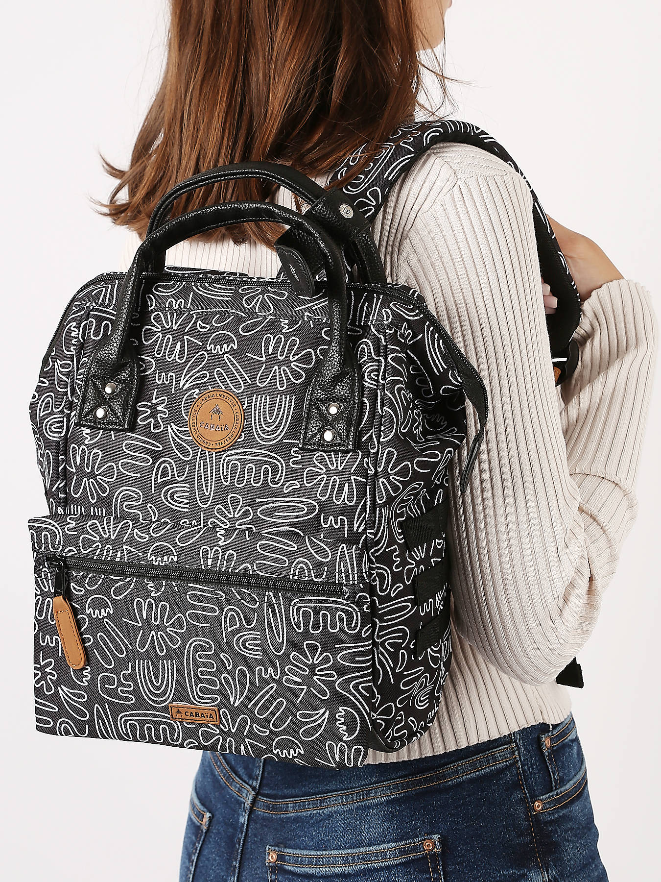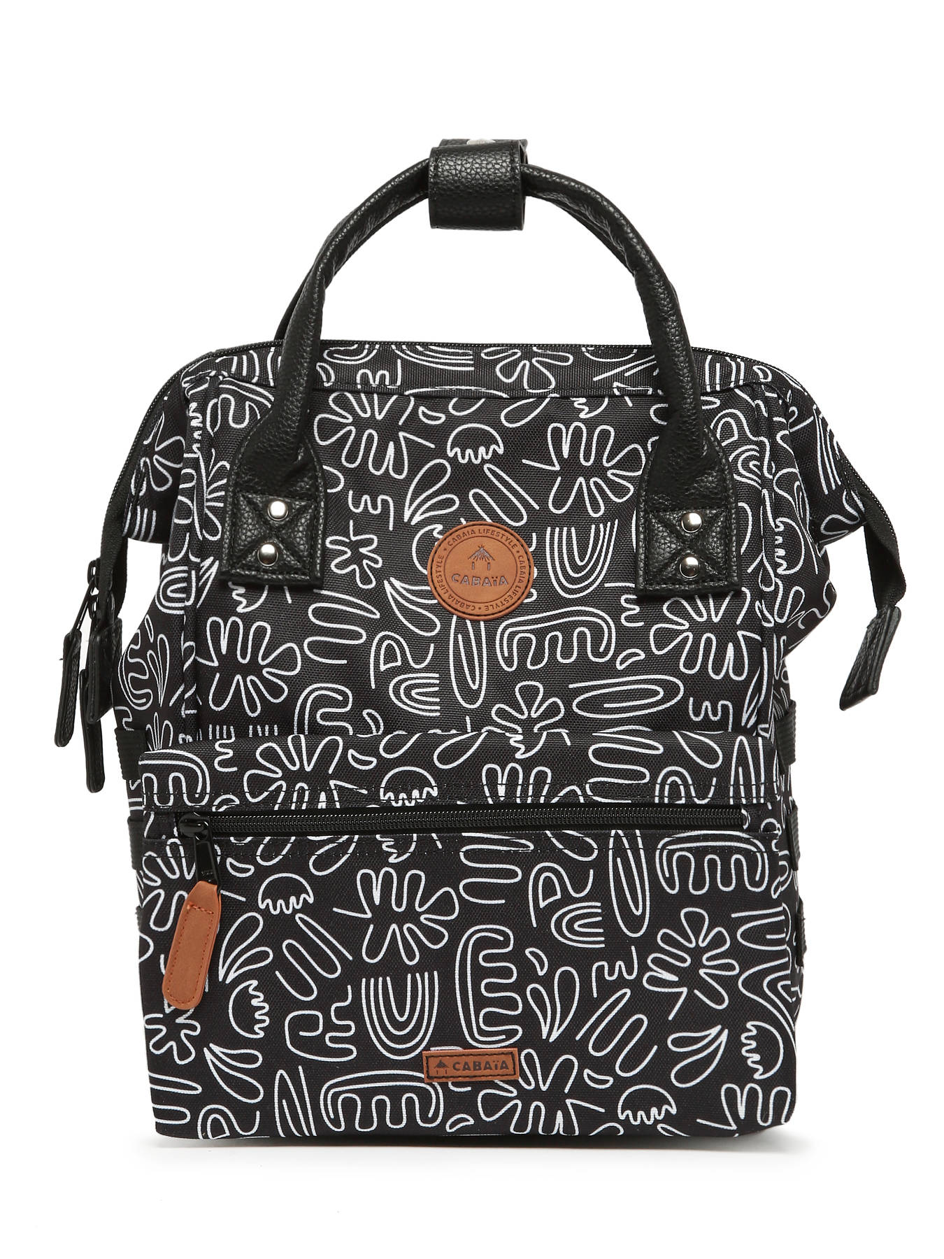 Adoptez le sac à dos vegan signé Cabaia ! Ce sac à dos Mini sera votre compagnon idéal, aussi bien pour les cours que pour voyager. On craque pour sa poche frontale amovible et interchangeable. Réalisé à partir de Nylon 900D la toile est très résistante. Ce sac à dos ados dispose d'une ouverture ""cabas"" grand angle donnant accès à un grand compartiment principal pouvant contenir un Ipad (hauteur 28 cm x largeur 21 cm x épaisseur 2 cm) à ranger dans la poche renforcée et du format cahiers A4. Très pratique, ce sac à dos sera également parfait pour transporter vos affaires lors d'un weekend, comme 1 jeans, 2 tee shirt, des sous-vêtements, une trousse de toilette et une tablette. Pour plus de confort et résistance, le fond est renforcé, le dos est rembourré et les bretelles sont molletonnées et anti-transpirantes. Au dos du sac, une poche zippée a été prévue pour ranger les petits effets personnels. Il y a également au dos une poche zippée spéciale pour glisser son téléphone portable ! On retrouve, sur le devant du sac à dos jeune un système de poche inviolable et breveté (système MOLLE) qui vous permet de personnaliser votre sac selon vos goûts. Deux poches zippées interchangeables sont fournies avec le sac à dos. Vous pouvez également ajouter des petites pochettes amovibles sur les côtés pour le personnaliser !
