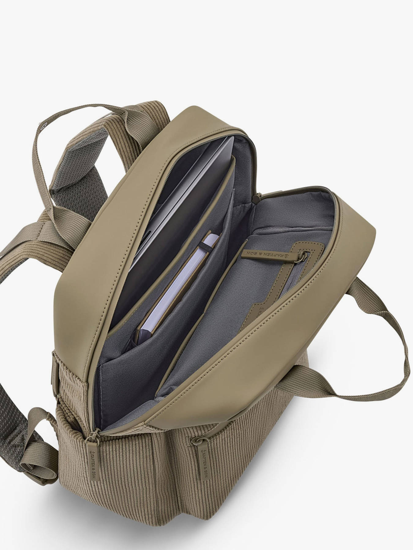Alliant design minimaliste et praticité, le Kapten & Son Bergen Pro Cord est le sac à dos idéal pour un usage quotidien, en ville comme au bureau. Son format compact de 12 L et ses multiples rangements intelligents permettent d’organiser facilement vos affaires : compartiment ordinateur (jusqu’à 15""), compartiment tablette, poches intérieures et extérieures, dont une poche antivol discrète. Fabriqué à partir de PET recyclé, ce sac est végan, résistant à l’eau et respectueux de l’environnement. Confortable grâce à ses bretelles ajustables et rembourrées ainsi que son dos renforcé, il se transporte aisément au quotidien et peut même s’accrocher à une valise via sa sangle de fixation. Sobre, moderne et fonctionnel, le Bergen Pro Cord est pensé pour accompagner les actifs urbains et les étudiants à la recherche d’un sac élégant et durable.