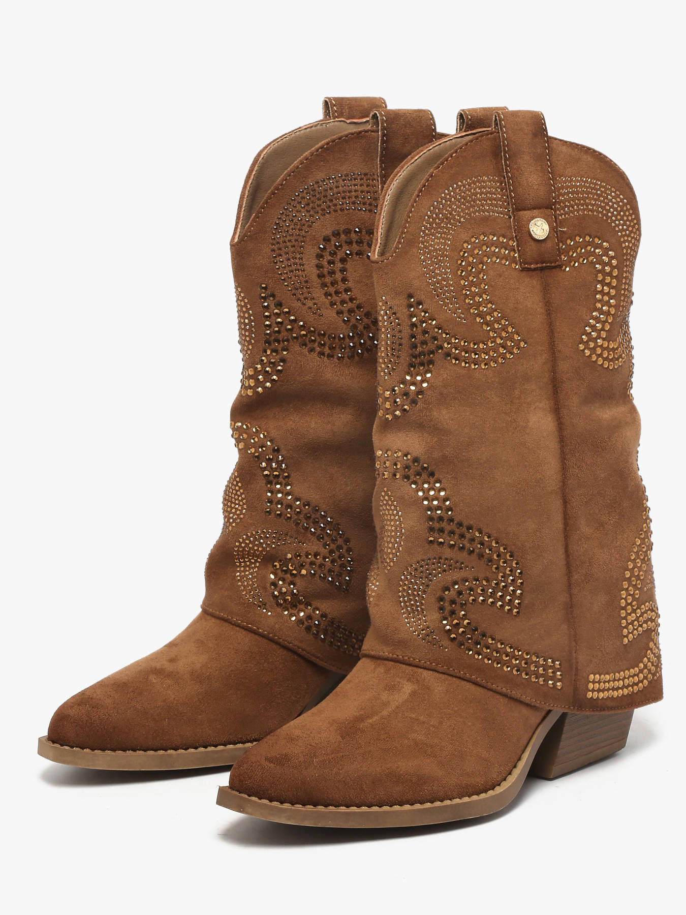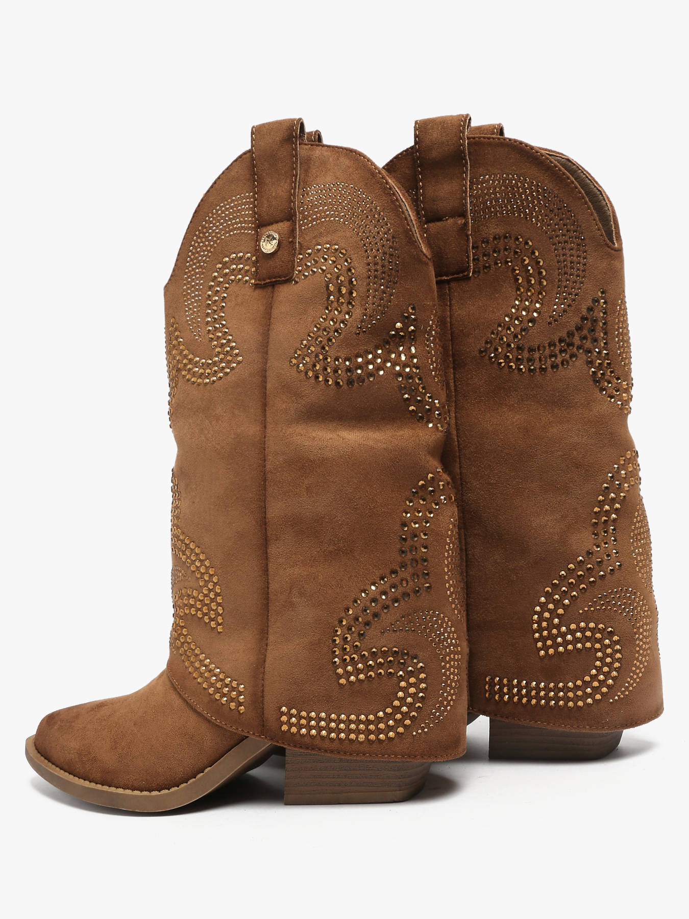 Discover the reinvented cowboy ankle boot by XTI with this women’s design available in camel or beige. Crafted from soft suede, it stands out with its elegant folded shaft and subtle rhinestone detailing, bringing refined sparkle and modern attitude. The western-inspired sole delivers bold, on-trend flair, while the 7 cm heel lifts the silhouette without compromising on comfort. Perfect for elevating both casual city looks and chic outfits, it provides stability thanks to its non-slip sole and features a removable insole. A contemporary western-style boot for confident, fashion-forward looks.