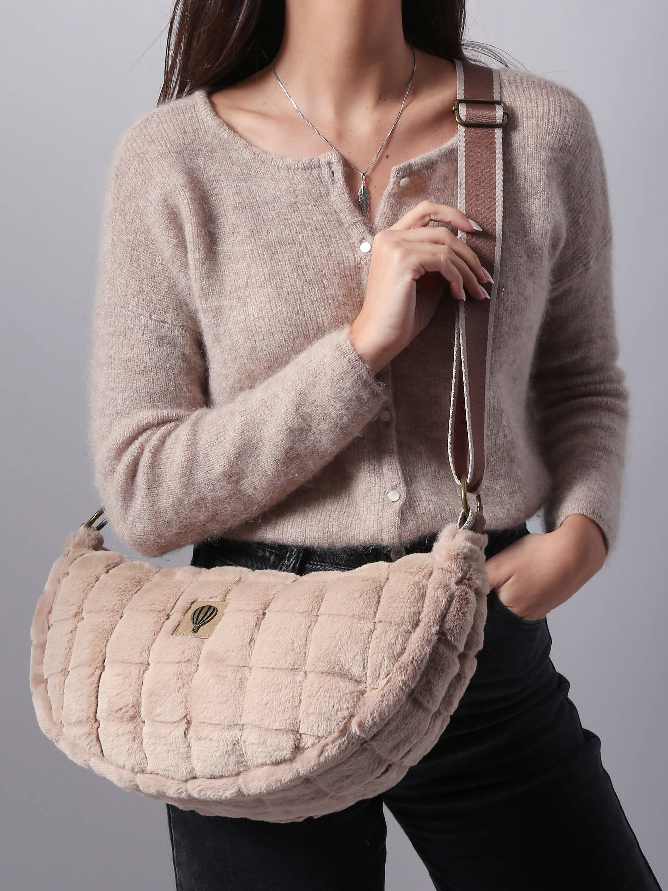 The Le Voyage en Panier Quadri Doudou crossbody bag strikes the perfect balance between softness, practicality, and contemporary style. Made from plush-feel polyester, it features a modern, functional silhouette designed for comfortable crossbody wear. The zip closure keeps belongings secure, while a back zip pocket provides quick access to essentials. Inside, fully lined in textile, it offers one main compartment complemented by two open pockets and one zip pocket for optimal organization. Lightweight, versatile, and refined, the Quadri Doudou blends contemporary aesthetics with practical functionality, perfectly embodying Le Voyage en Panier’s spirit: a chic, easy-to-wear bag for everyday life.