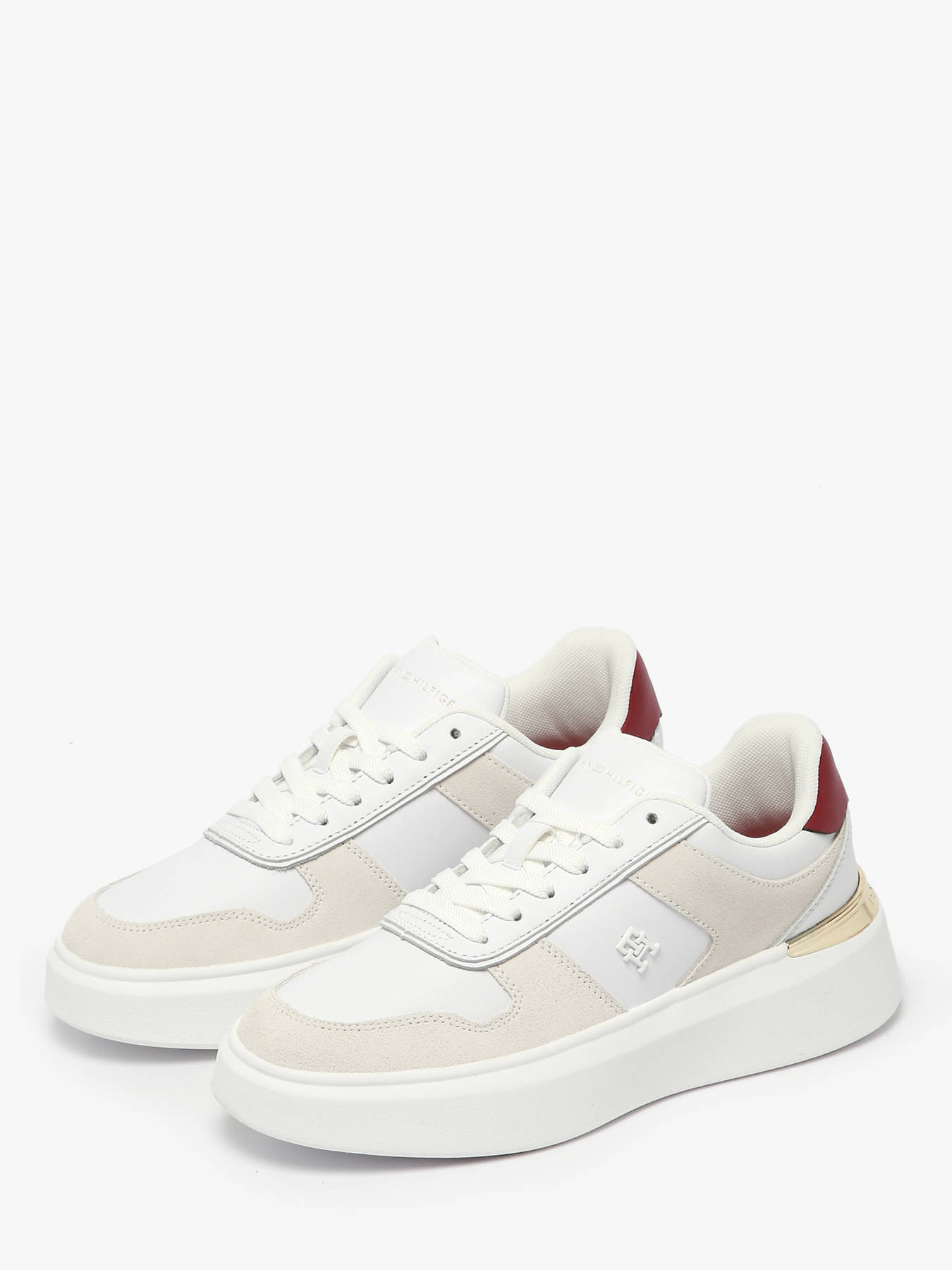 The TH FASHION COURT MIX sneakers from TOMMY HILFIGER for women combine modern style with everyday comfort. Featuring a high-quality leather upper, they offer an elegant and refined look, perfect for completing urban or casual outfits. The lace-up fastening allows for a precise fit and optimal support, while the textile lining and insole provide softness, breathability, and long-lasting comfort. Versatile and trendy, these sneakers pair effortlessly with jeans, skirts, or casual trousers, reflecting TOMMY HILFIGER’s iconic aesthetic: meticulous design, quality materials, and confident style for a feminine, contemporary, and elegant look with every step.