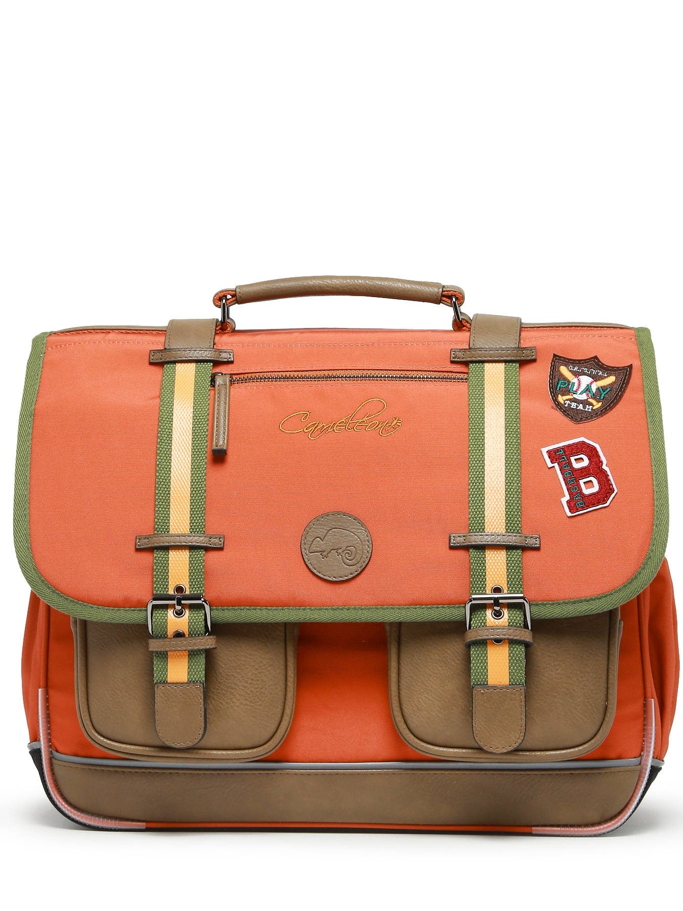 41 cm - 24 litres - 1.33 kg ~ Cartable primaire 41 cm signé Caméléon de la ligne Vintage Urban. Ce cartable enfant convient parfaitement pour le CM1 et le CM2. On adore les belles touches vintage avec ses finitions et sa poche à fermeture zippée sur le rabat ! Il se divise en trois grands compartiments pour l'ensemble des affaires d'école. Fonctionnel, il dispose d'une petite poche zippée, d'un emplacement spécial règle ainsi que de deux poches à fermeture éclair sur le devant du cartable. Petit plus, ce cartable dispose d'une étiquette nom. Ergonomique, la poignée et le fond du cartable sont renforcés. Très confortable, le dos et les bretelles sont rembourrés. Ce cartable est imperméabilisé. Côté sécurité, des bandes réfléchissantes sont disposées autour du cartable enfant. Petit plus, une règle est offerte !