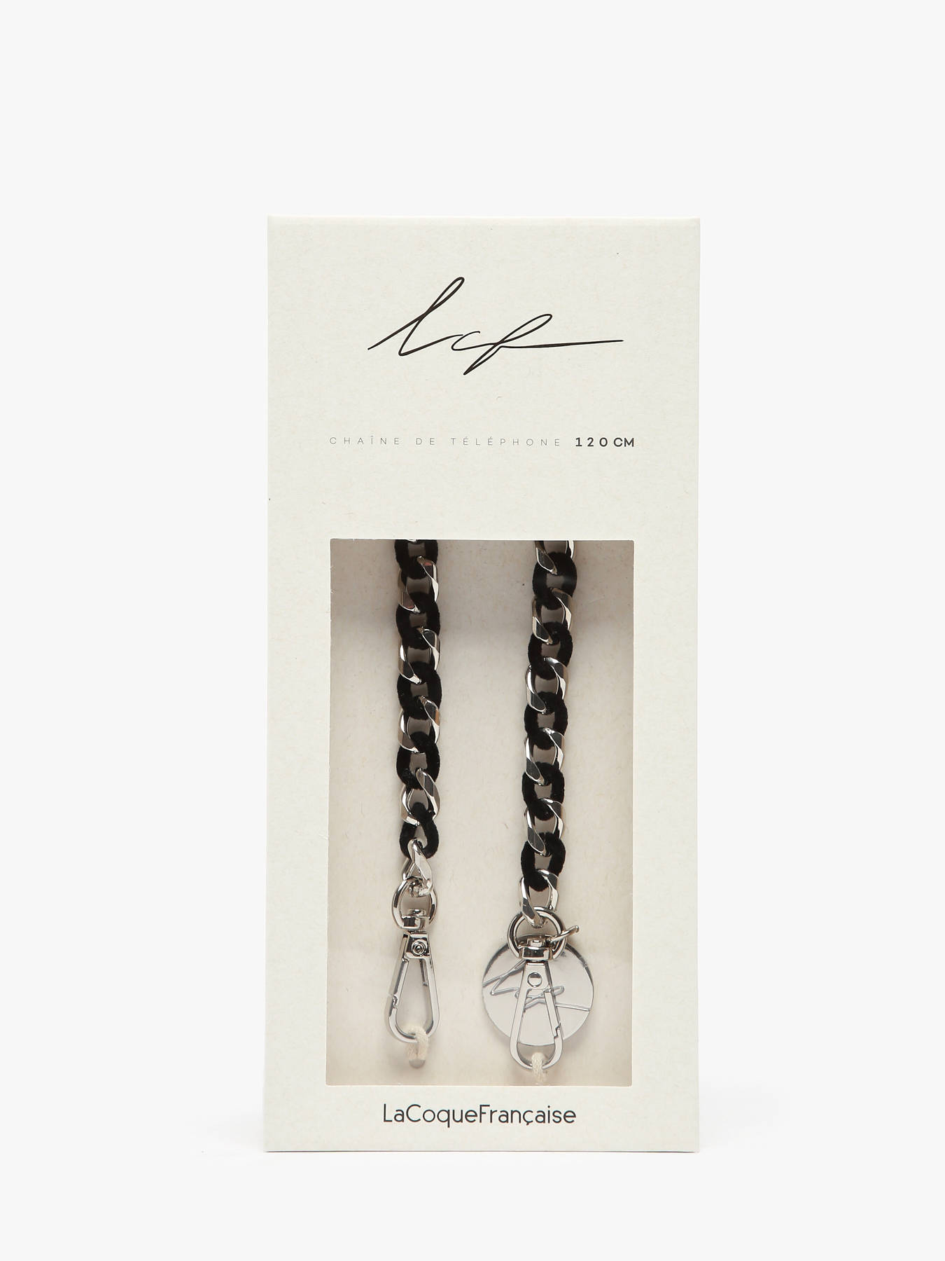 La chaîne bijoux Sona de 120 cm en velours noir et métal doré de LA COQUE FRANÇAISE allie parfaitement élégance et modernité. Cette chaîne unique se distingue par son tissu velours doux et son métal doré raffiné, créant un contraste subtil qui ajoute une touche de sophistication à votre style. Les mousquetons dorés et les anneaux en métal assurent une fixation solide et un ajustement pratique, tout en apportant une note de luxe à l'ensemble. Léger et agréable à porter, chaque modèle est conçu pour offrir une fusion parfaite entre mode et fonctionnalité. Accompagnée d'un pochon en coton recyclé pour un rangement soigné, cette chaîne est idéale pour personnaliser votre look quotidien ou pour vos événements spéciaux. Sa longueur de 120 cm en fait un accessoire polyvalent, facile à associer à nos coques à anneaux. Pour préserver sa beauté, évitez l’utilisation de produits chimiques agressifs et gardez-la hors de portée des enfants.