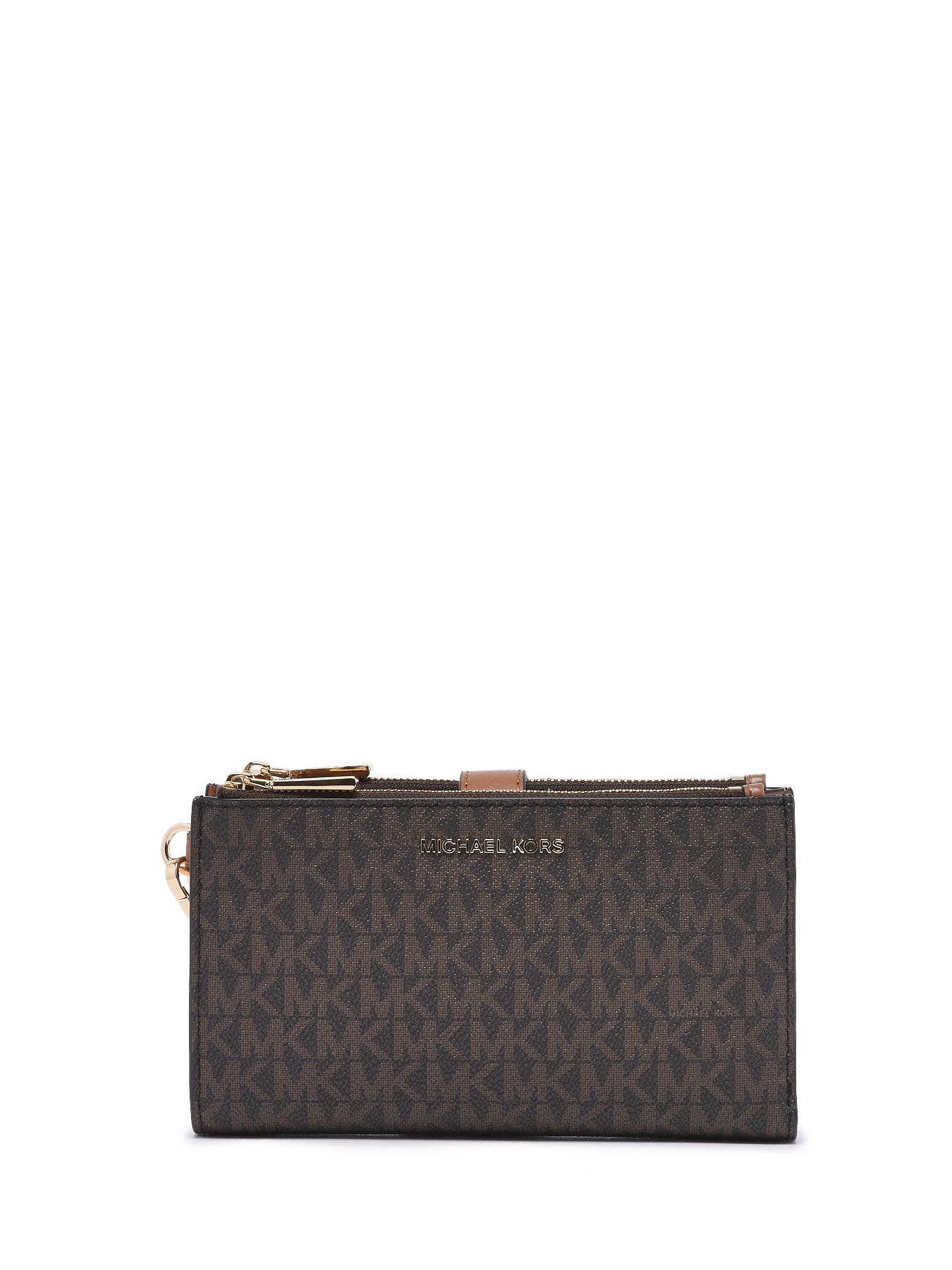 Fabriqué en toile enduite et finitions cuir raffiné pour un look intemporel, ce portefeuille Michael Kors élégant est doté de deux compartiments zippés qui s'ouvrent pour révéler des poches centrales qui vous permettront de ranger tous vos essentiels, depuis votre carte de crédit jusqu'à votre smartphone. Avec sa sangle pratique, cet accessoire polyvalent peut être porté à la main ou rangé dans un cabas. Ses deux poches zippées aux extrémités sont pratiques pour ranger votre monnaie et vos billets. Son design monogrammé MK fera de cet accessoire un article unique.