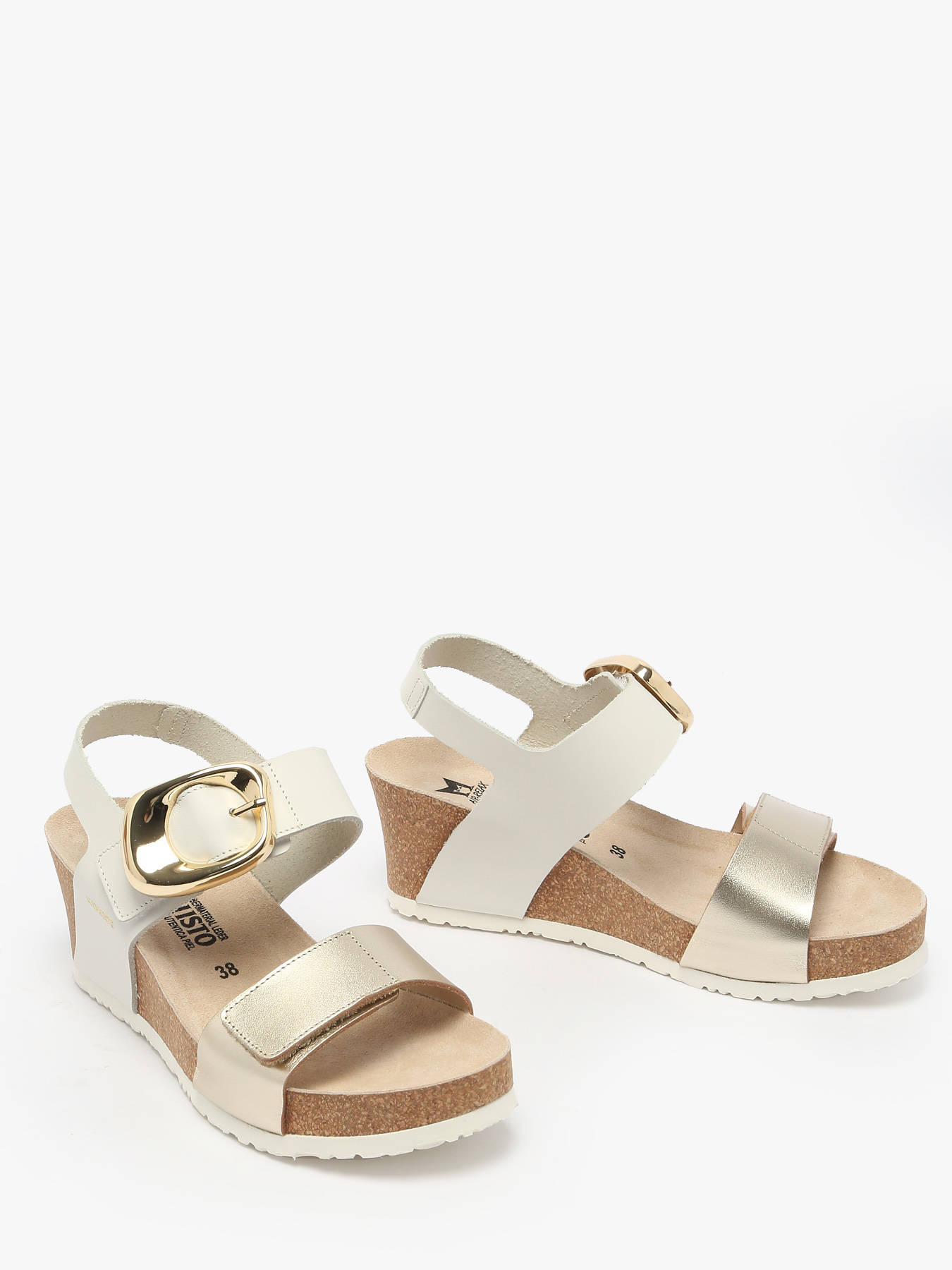 The LEANDRE VEGA leather sandals by Mephisto are the perfect choice for summer, combining comfort and style. Their white color, enhanced by a golden buckle, adds a chic and sophisticated touch to your outfits. Made from high-quality leather with a leather lining, they provide a pleasant and lasting feel throughout the day. The leather insole ensures optimal comfort. The ankle buckle closure and adjustable strap across the foot allow for a customized fit, while the wedge heel offers both comfort and elegance. These sandals are ideal for completing your summer looks with refinement.