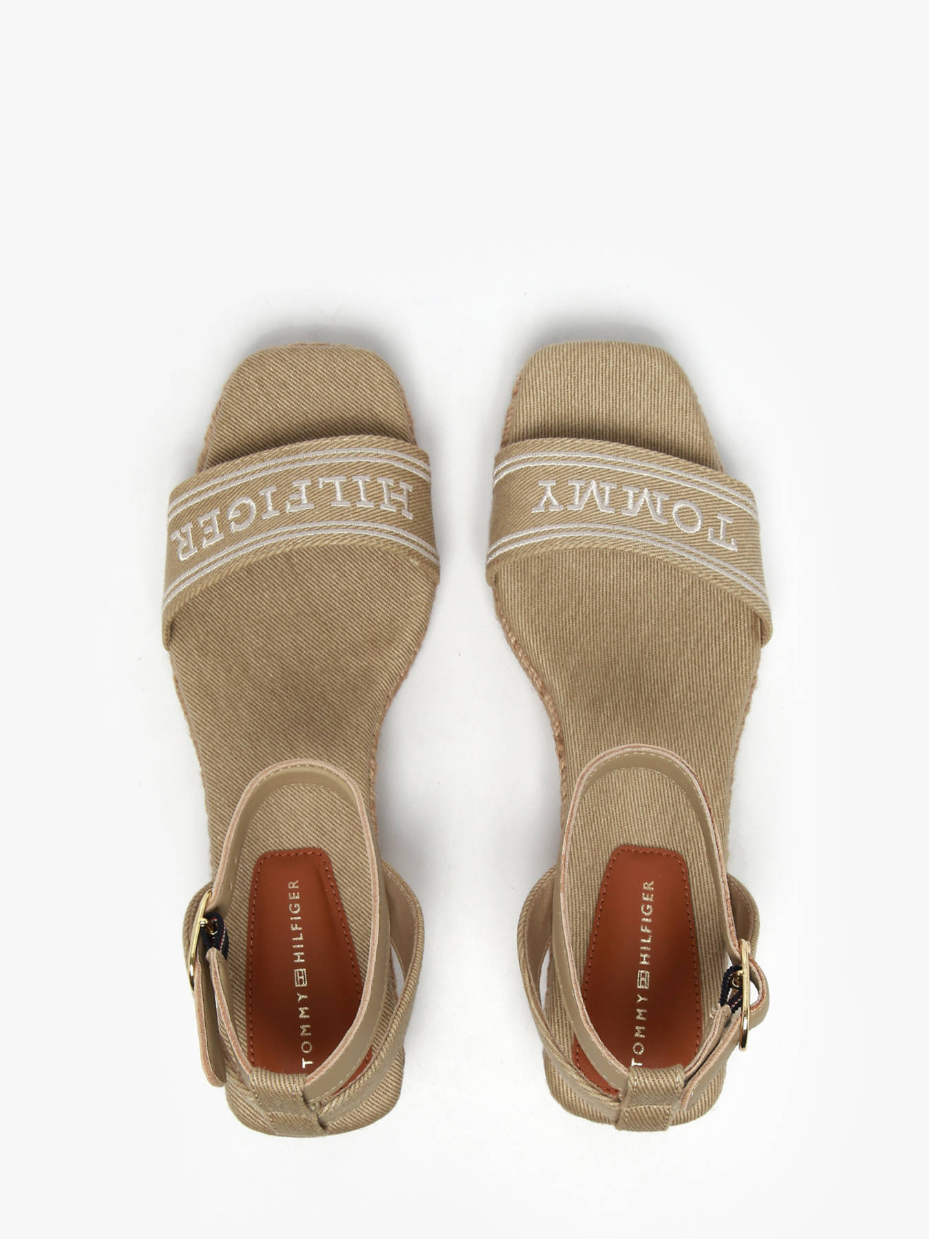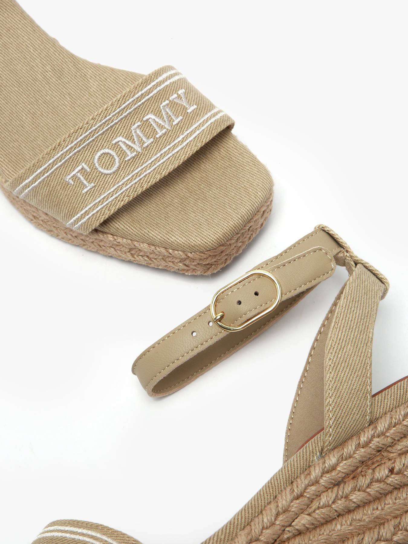 Add a summery touch to your outfits with these Hilfiger Monotype wedge espadrilles. Featuring a cotton upper and cotton lining, they ensure comfort and breathability. The jute-covered midsole and thermoplastic rubber outsole offer a natural and durable finish. The 5.8 cm wedge heel elevates your look while providing excellent support, and the ankle strap with buckle closure allows for a perfect fit. The Hilfiger monotype logo embroidered on the toe strap adds a subtle, elegant touch, enhancing the modern design of these espadrilles. The open square toe gives a chic finish, perfect for sunny days. Available in horseradish color, these wedge espadrilles combine comfort and style.