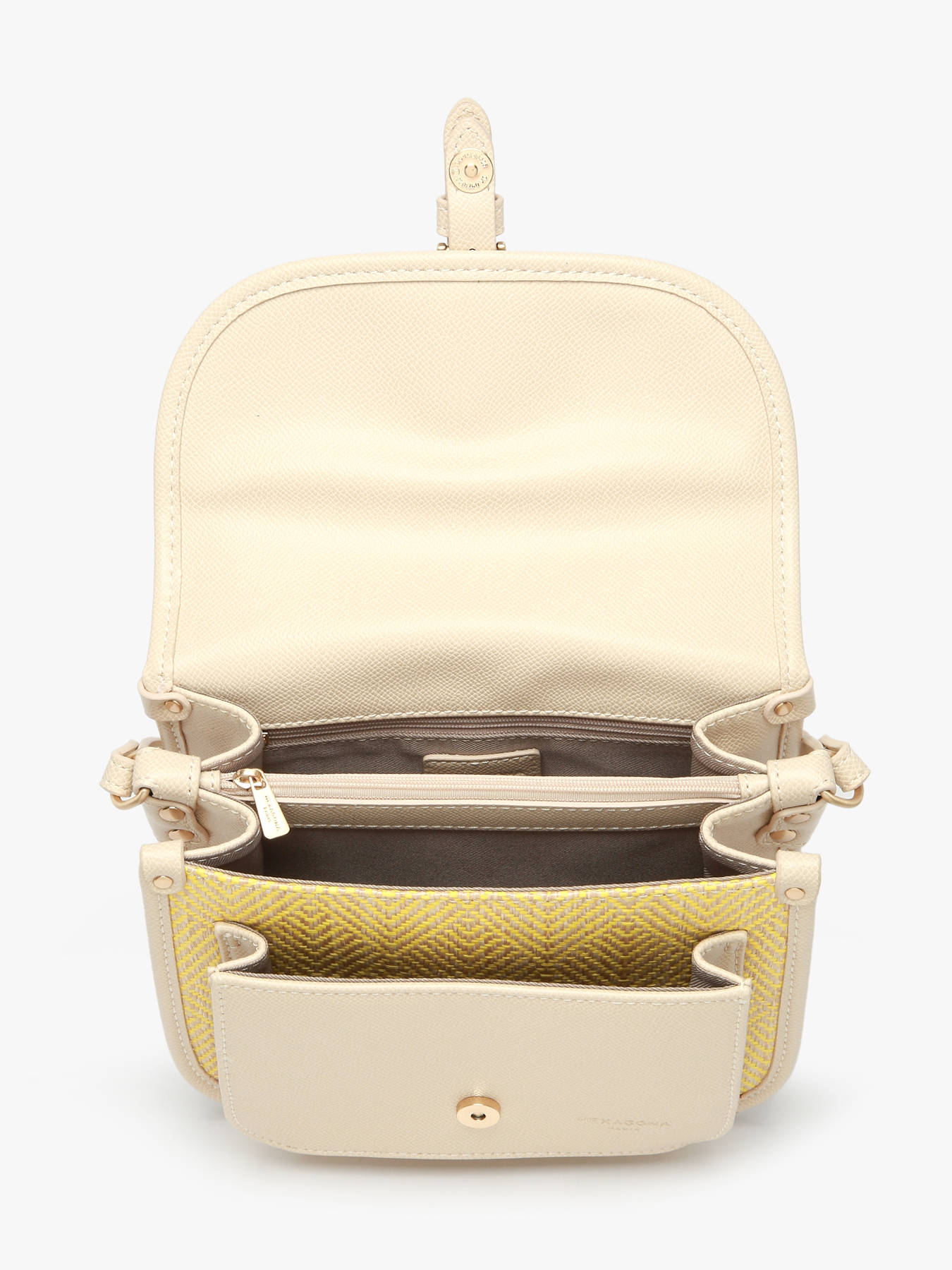 The CAPRI Hexagona crossbody bag, made from synthetic-lined textile, combines lightness and durability for stylish everyday use. Its modern exterior features a front pocket and a back pocket, perfect for keeping your essentials within easy reach. The magnetic flap closure ensures optimal security while allowing quick access to the contents. The adjustable strap offers comfortable crossbody wear, suited to all your activities. Inside, two well-designed compartments, complemented by a simple pocket and two zip pockets, provide efficient organization for your belongings. This versatile bag reflects Hexagona’s contemporary and functional aesthetic, perfect for complementing all your outfits, from office to casual outings, with elegance and practicality.