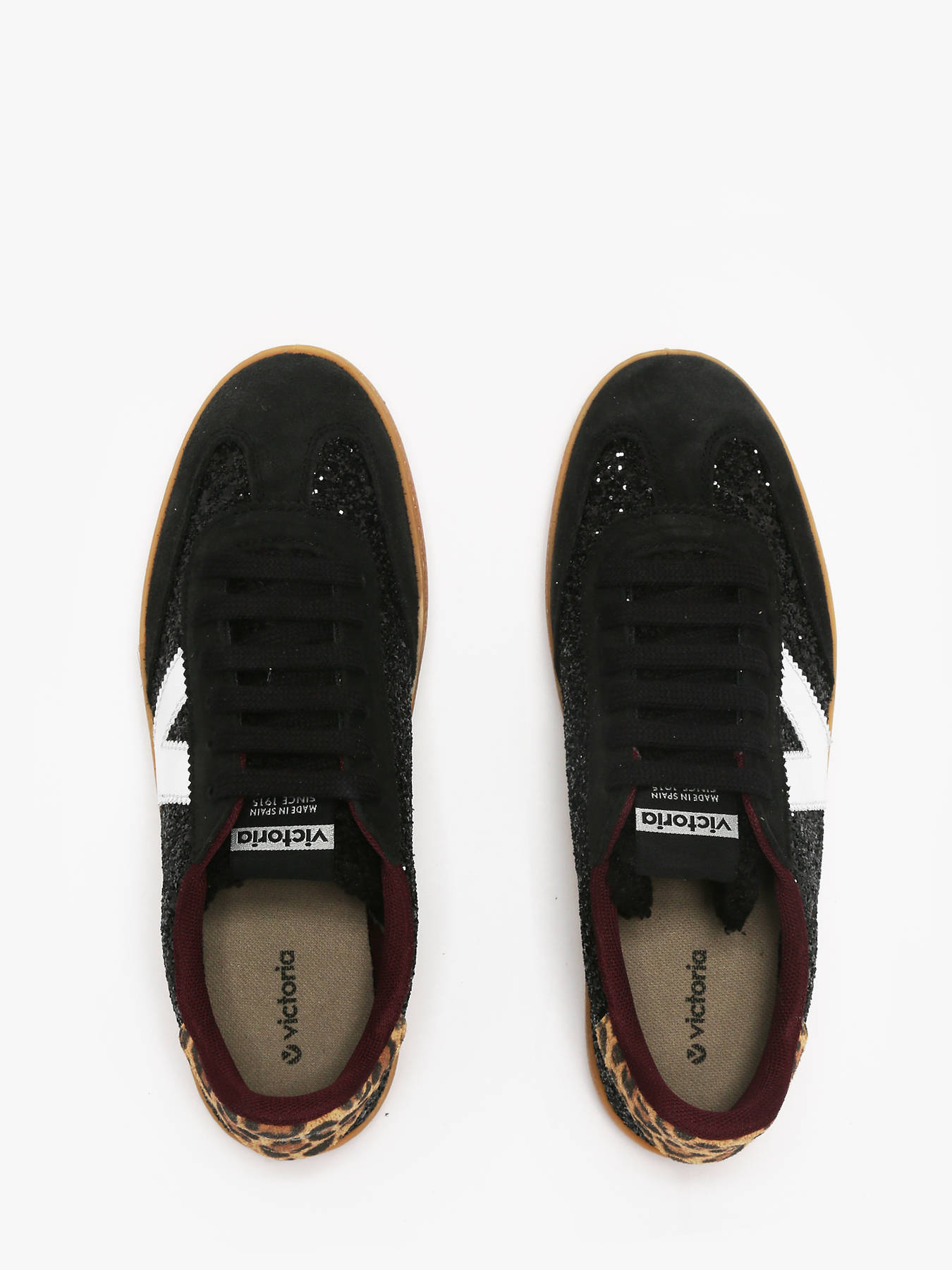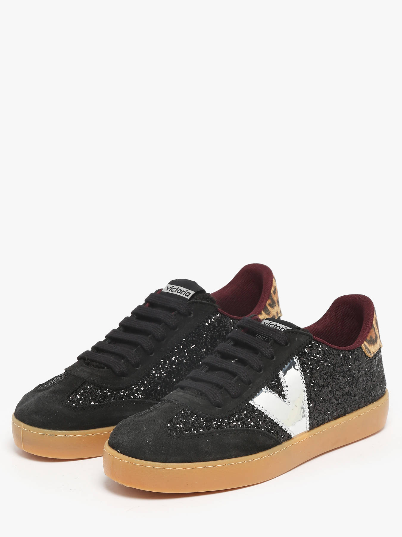 The Berlín Ciclista Paillettes & Animal Print sneakers by Victoria combine bold style with modern comfort. Made in Spain, they feature a glitter-textured finish, suede leather inserts, and an animal-print detail on the heel. Their updated cyclist silhouette, faux fur tongue, and caramel translucent sole bring a retro yet trendy touch. An ergonomic insole made from recycled materials ensures superior comfort with every step. A true statement of feminine style, they also charm with a unique detail: a subtle strawberry scent when opening the box.
