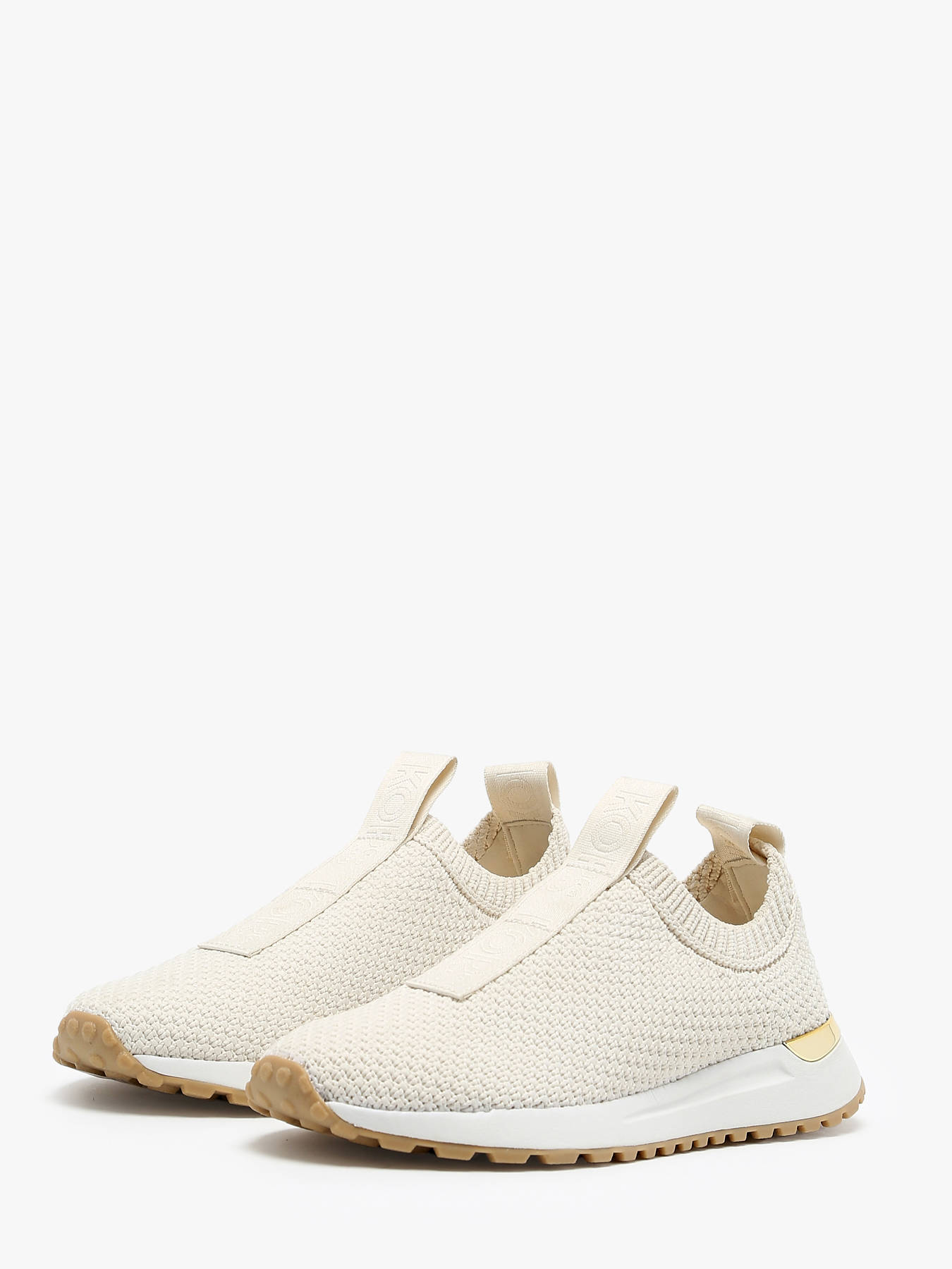 The MICHAEL KORS sneakers are trendy and comfortable shoes, perfect for everyday wear. With their high-quality textile composition, they offer both style and breathability. Their sleek design with a textile upper and matching lining ensures a modern and versatile look that pairs well with various outfits. Featuring a textile and synthetic insole, these sneakers provide additional comfort and good foot support. The rubber outsole ensures optimal grip on different surfaces, providing increased stability and safety while walking. With their convenient elastic closure, these shoes slip on easily and adjust perfectly to the foot, offering personalized comfort with every step.